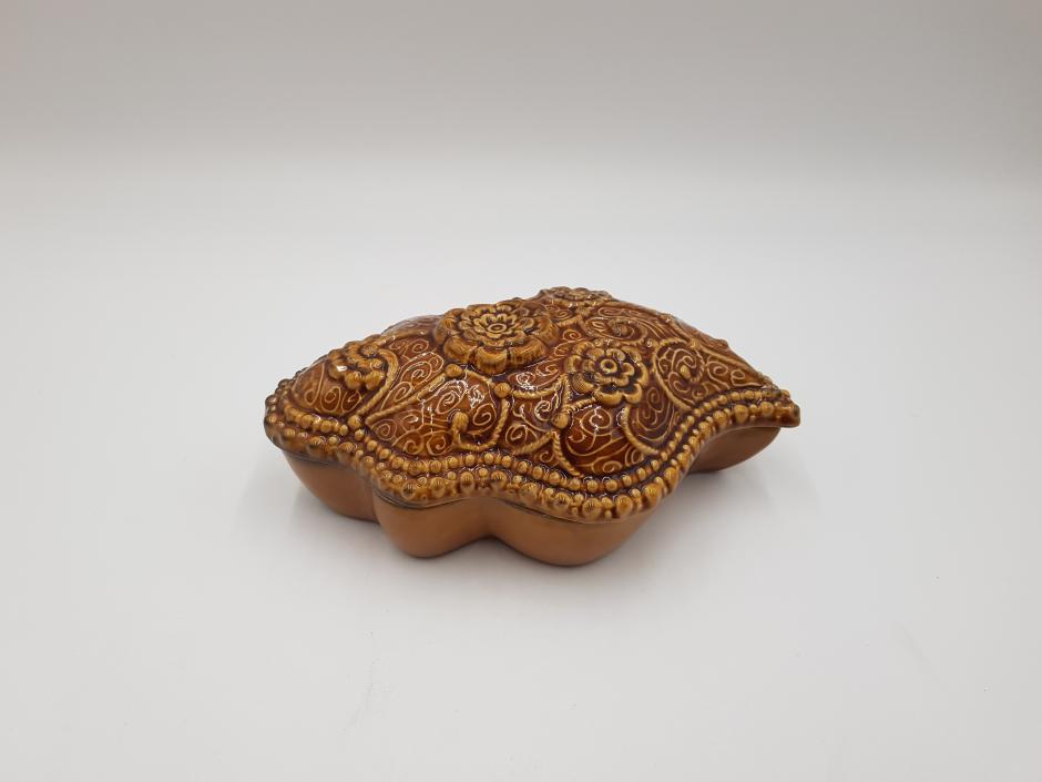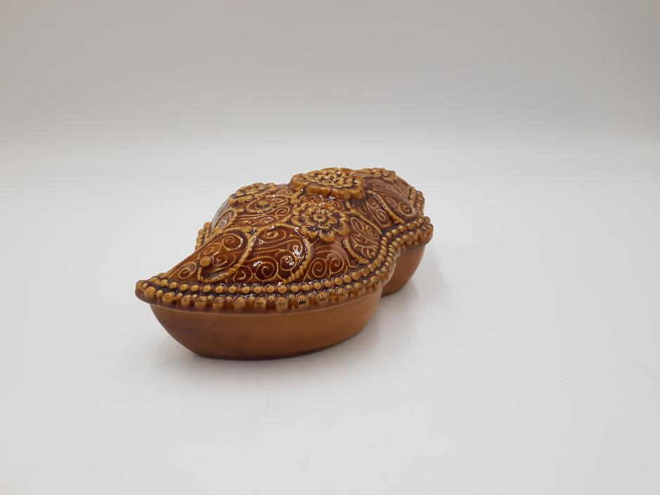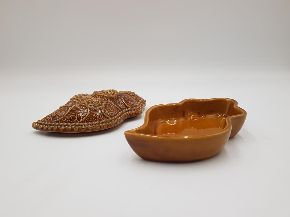 Bomboneire/porta-jóias em cerâmica, produzida à mão, peça que homenageia o Coração de Viana, uma representação icônica da arte e da joalharia filigrana portuguesas, símbolo fortemente enraizado na cultura nacional.