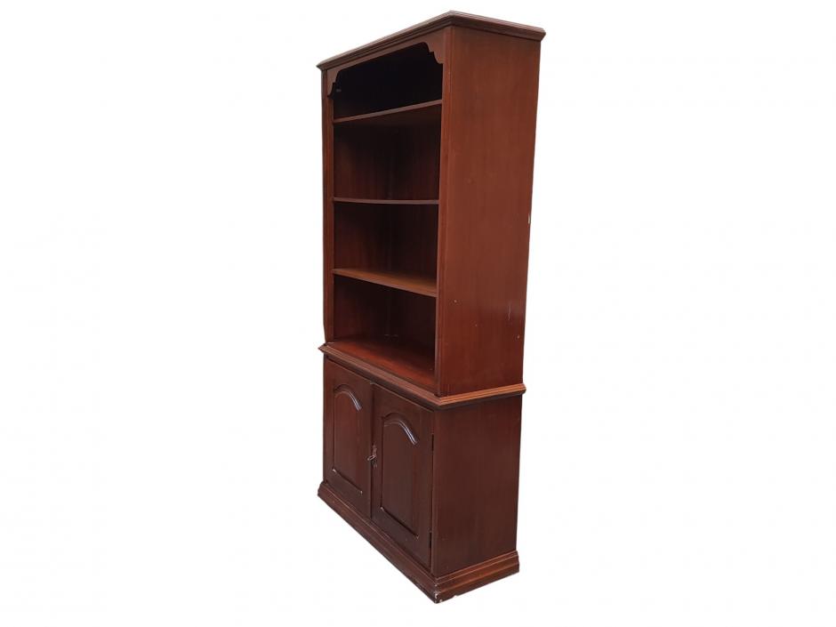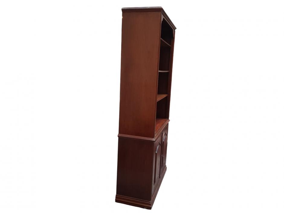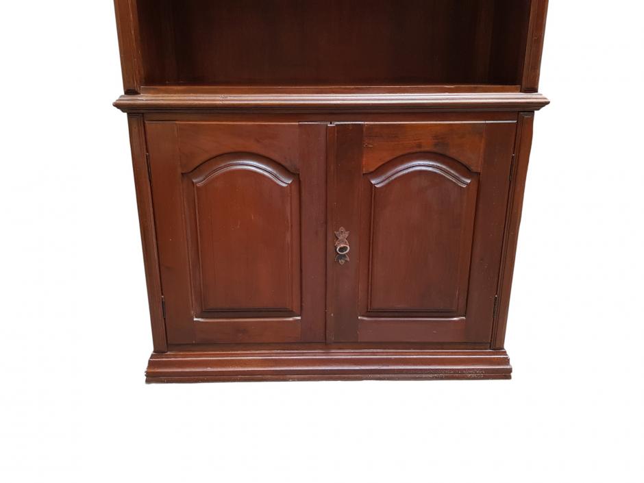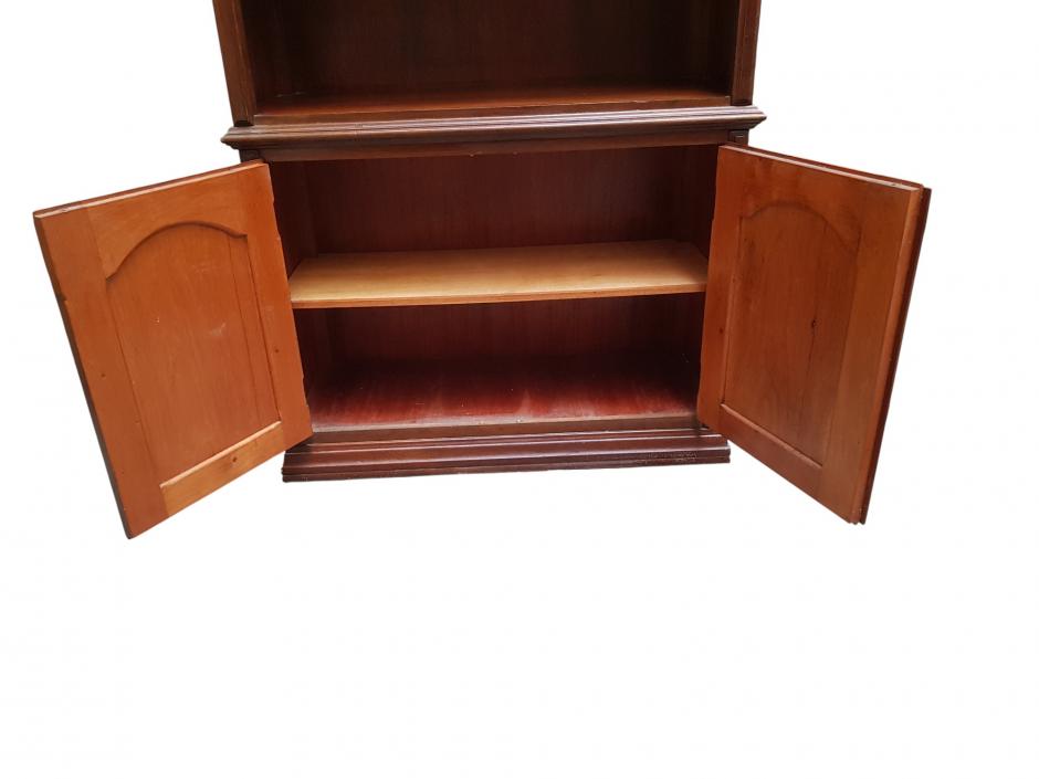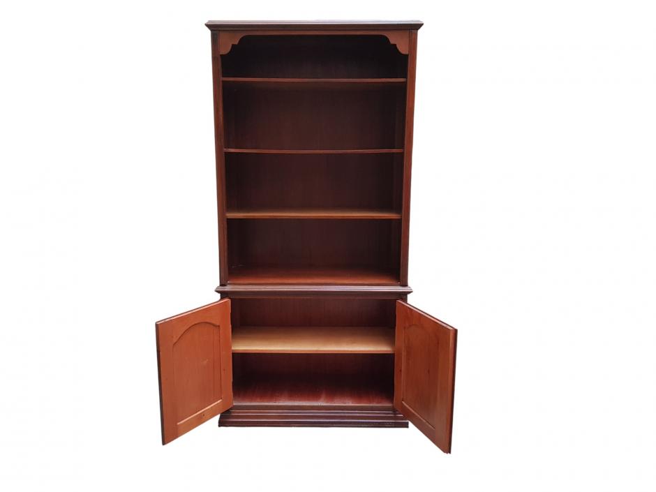 Elegante estante/livreiro em madeira nobre, a parte inferior conta com 02 portas e 01 prateleira interna e na parte superior possui 03 prateleiras.