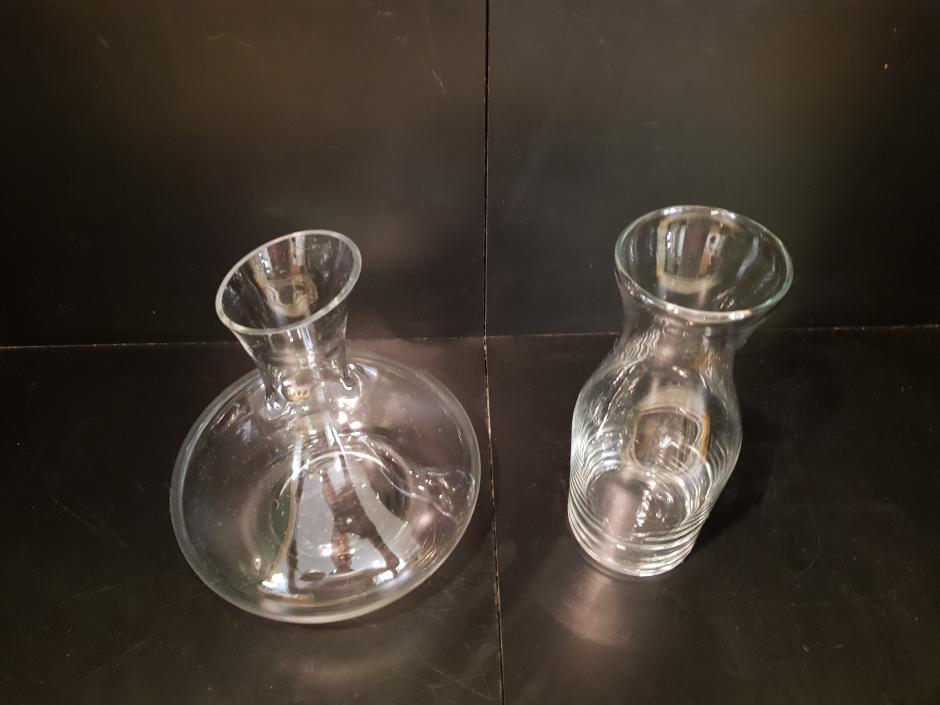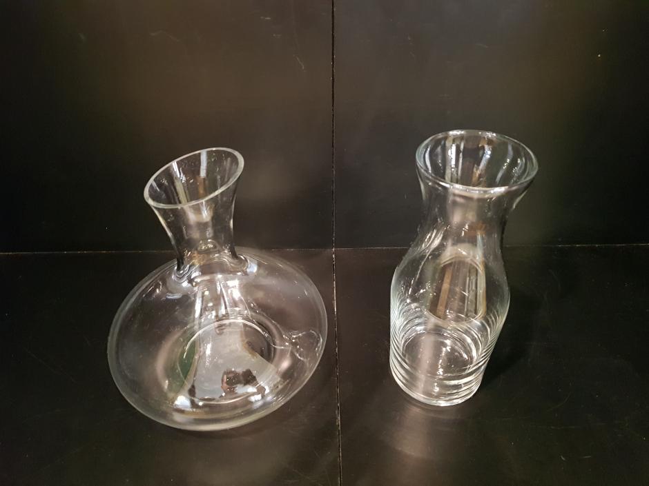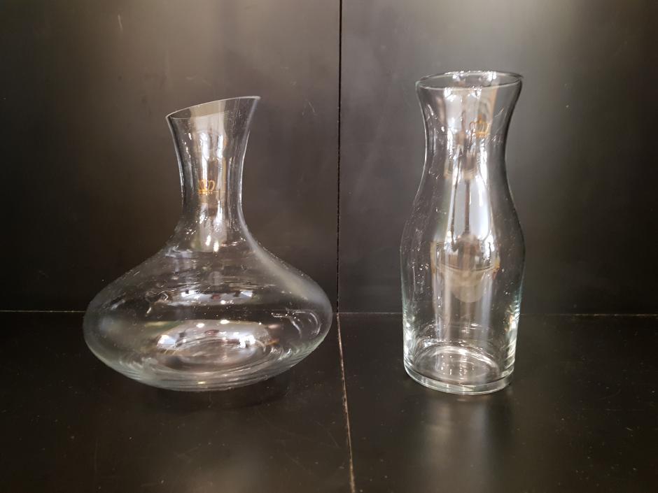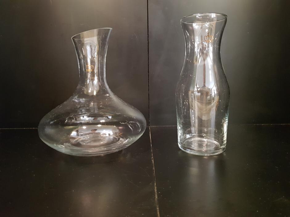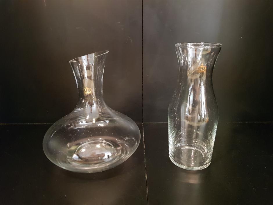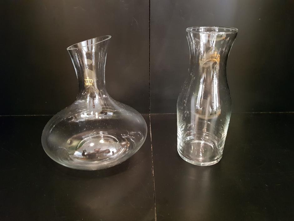 Conjunto de decanter e garrafa para água em vidro translúcido.