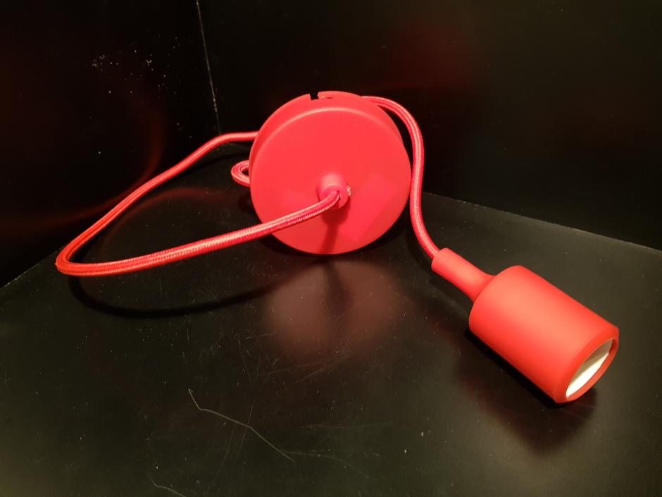 Pendente para lâmpada, ajustável, de borracha e na cor vermelha.