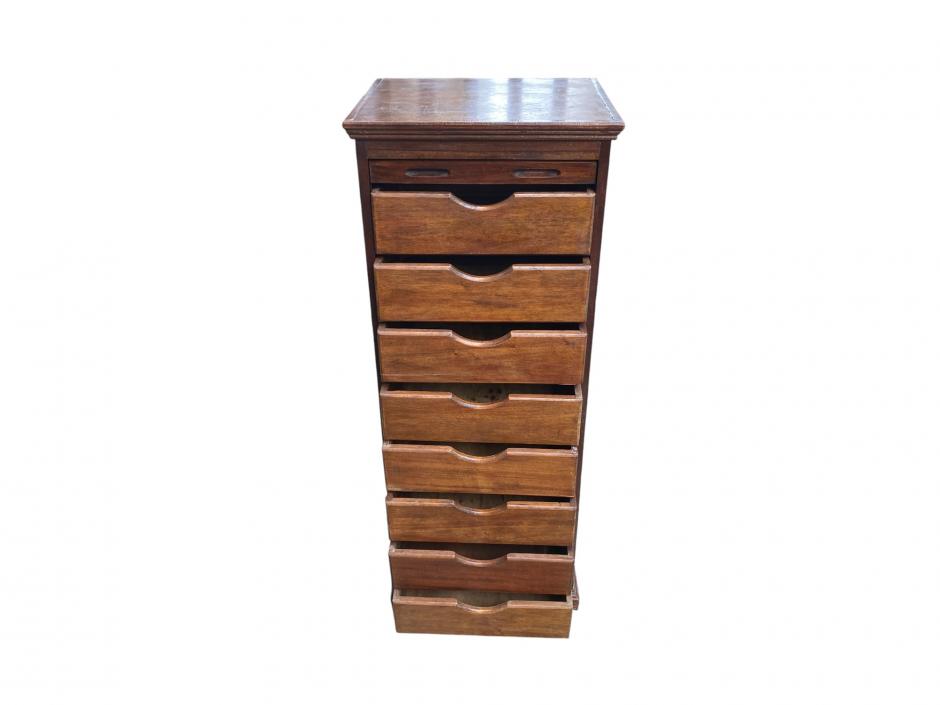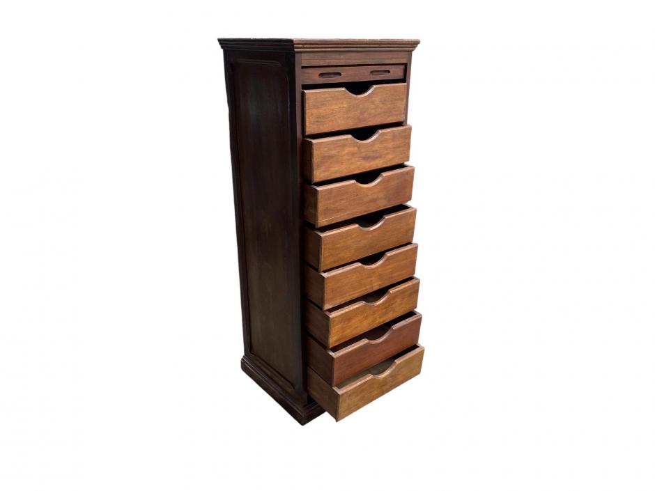 Antigo móvel arquivo em madeira nobre, do início do século XX, conta com porta de correr tipo tambor e 08 gavetas internas.