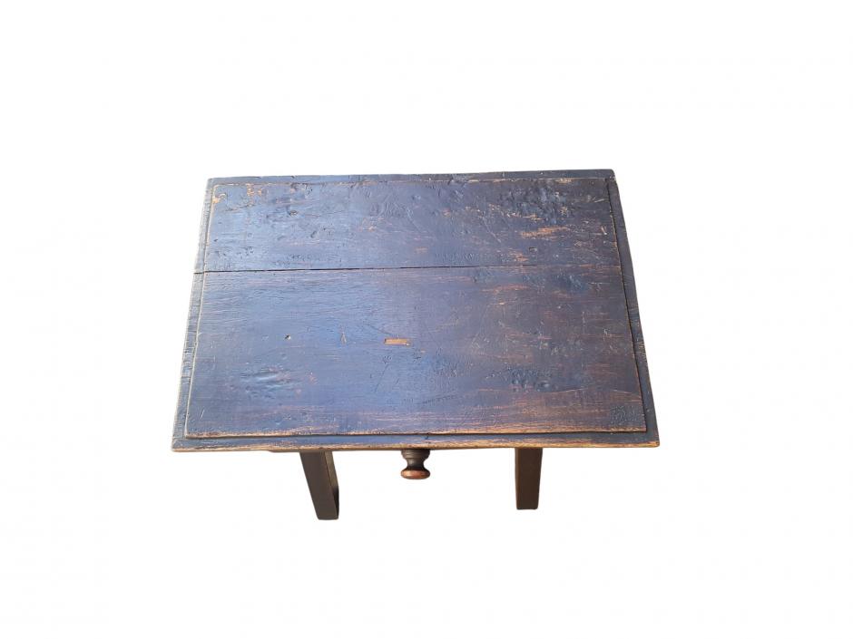 Pequena mesinha de apoio em madeira nobre com tampo retangular e 01 gaveta, apoiado sobre 04 bases interligadas.