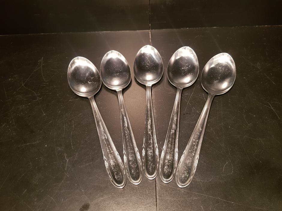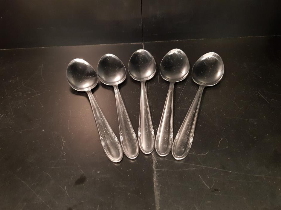 Conjunto de 05 colheres de sopa em inox.