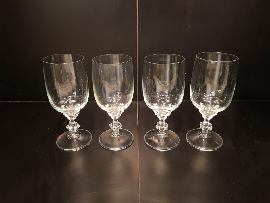 Conjunto com 04 taças para vinho branco em vidro translúcido, haste facetada e base redonda.