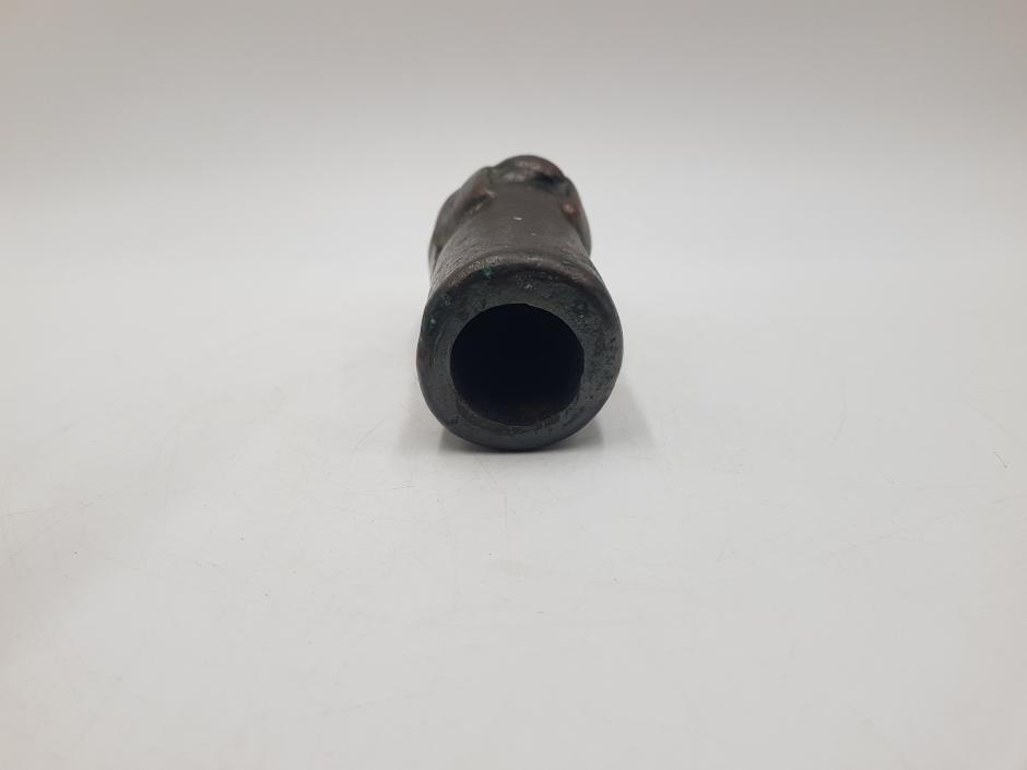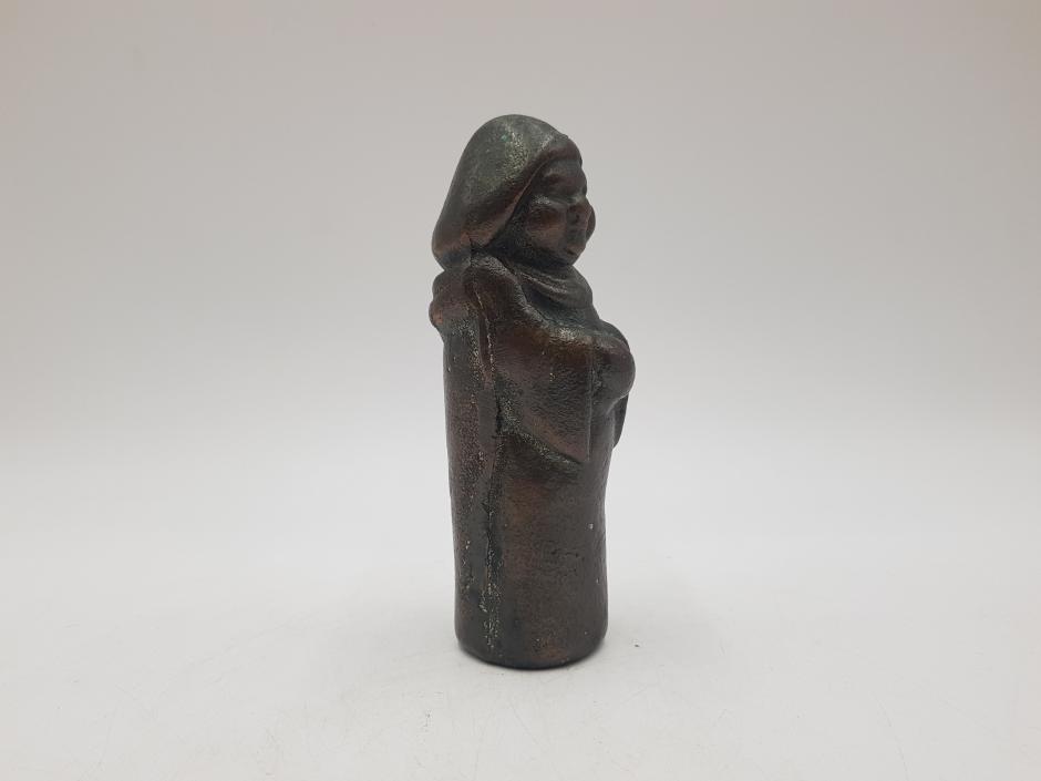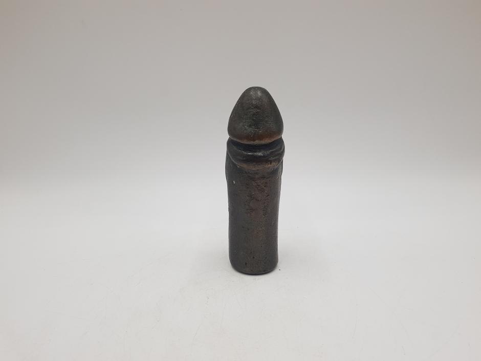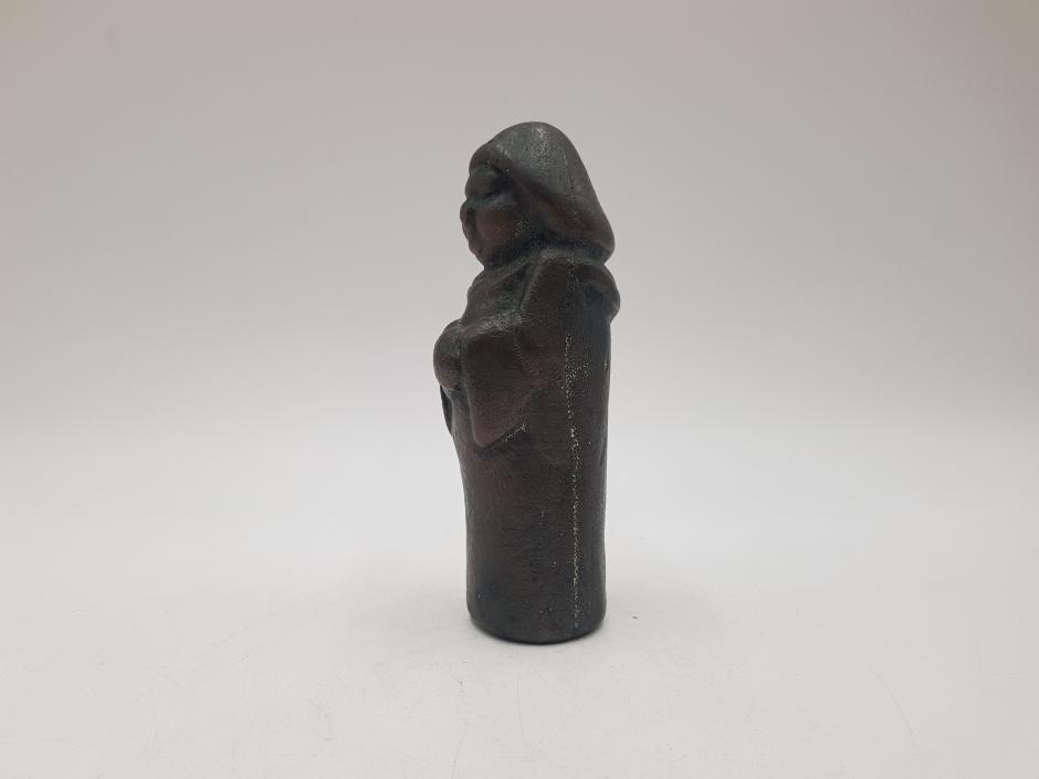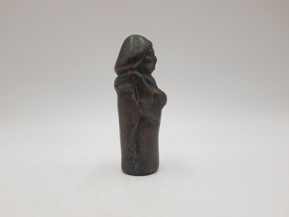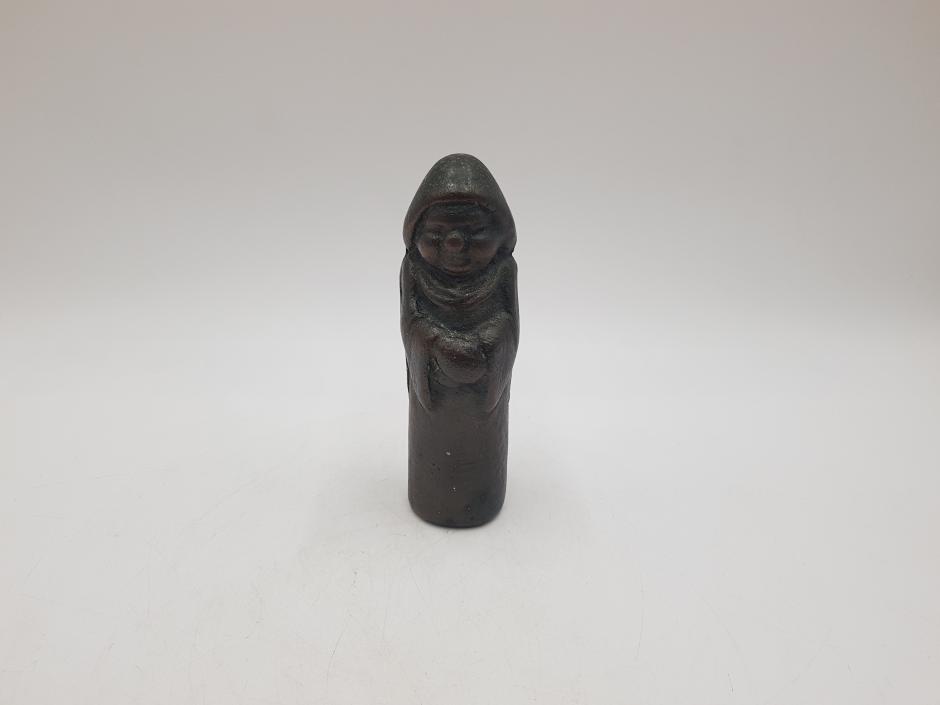 Escultura erótica em metal representando duplo sentido, frade e falo. Altura: 16cm