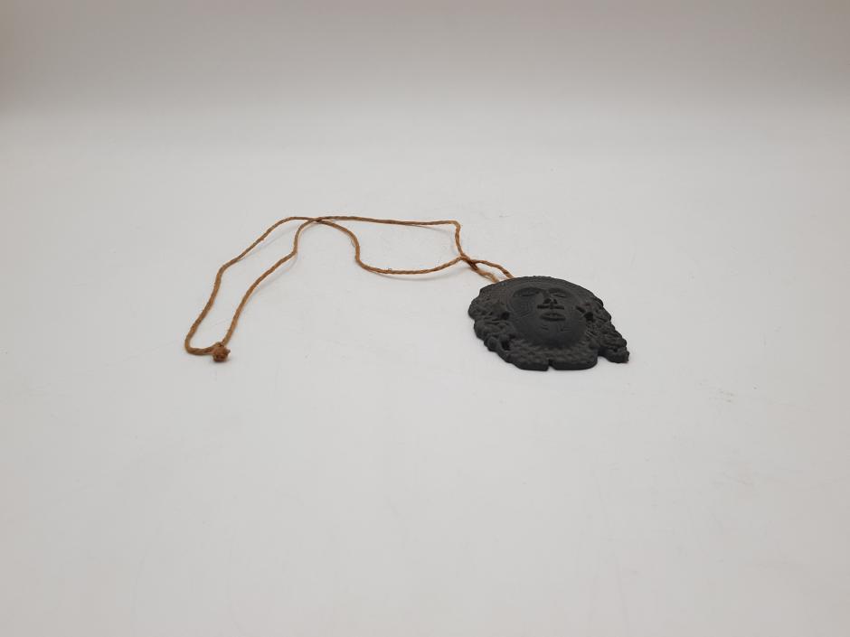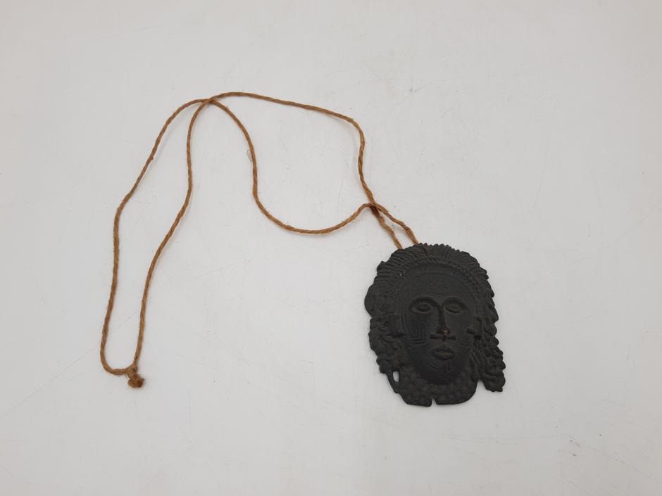 Pequena máscara africana feita em barro cozido, marcada: Luanda - 1972. Altura: 9cm Largura: 7cm