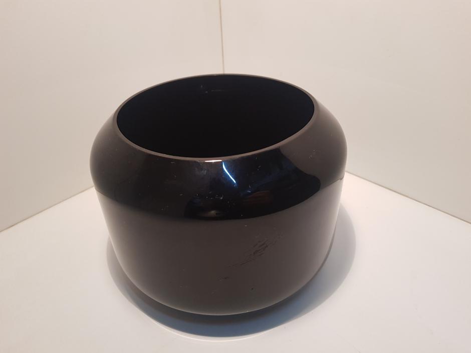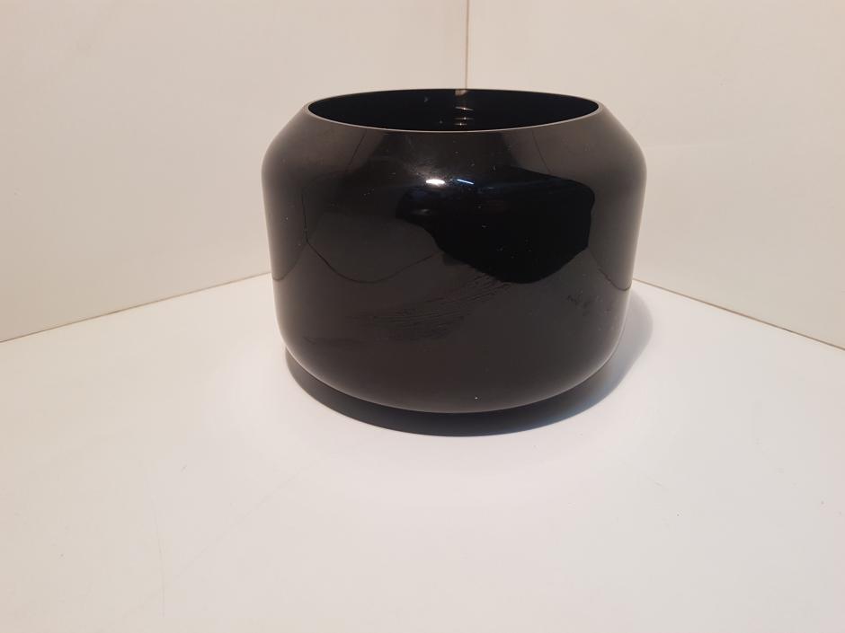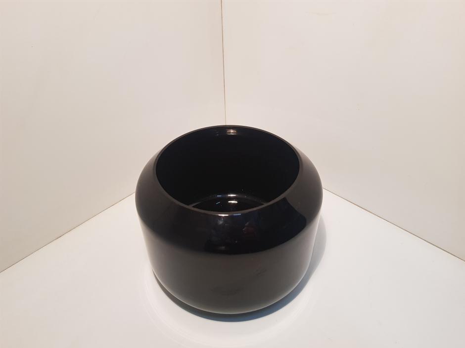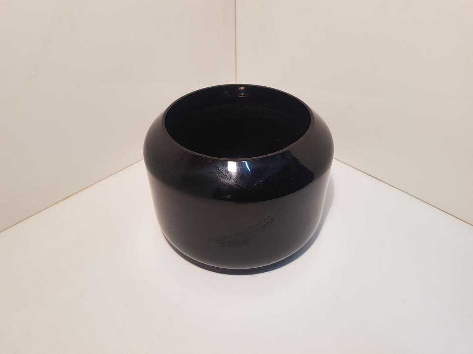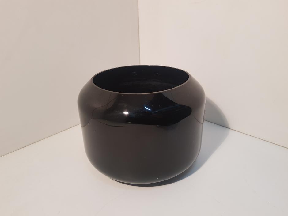 Pequeno cachepot em vidro com tonalidade preta. Altura: 12cm